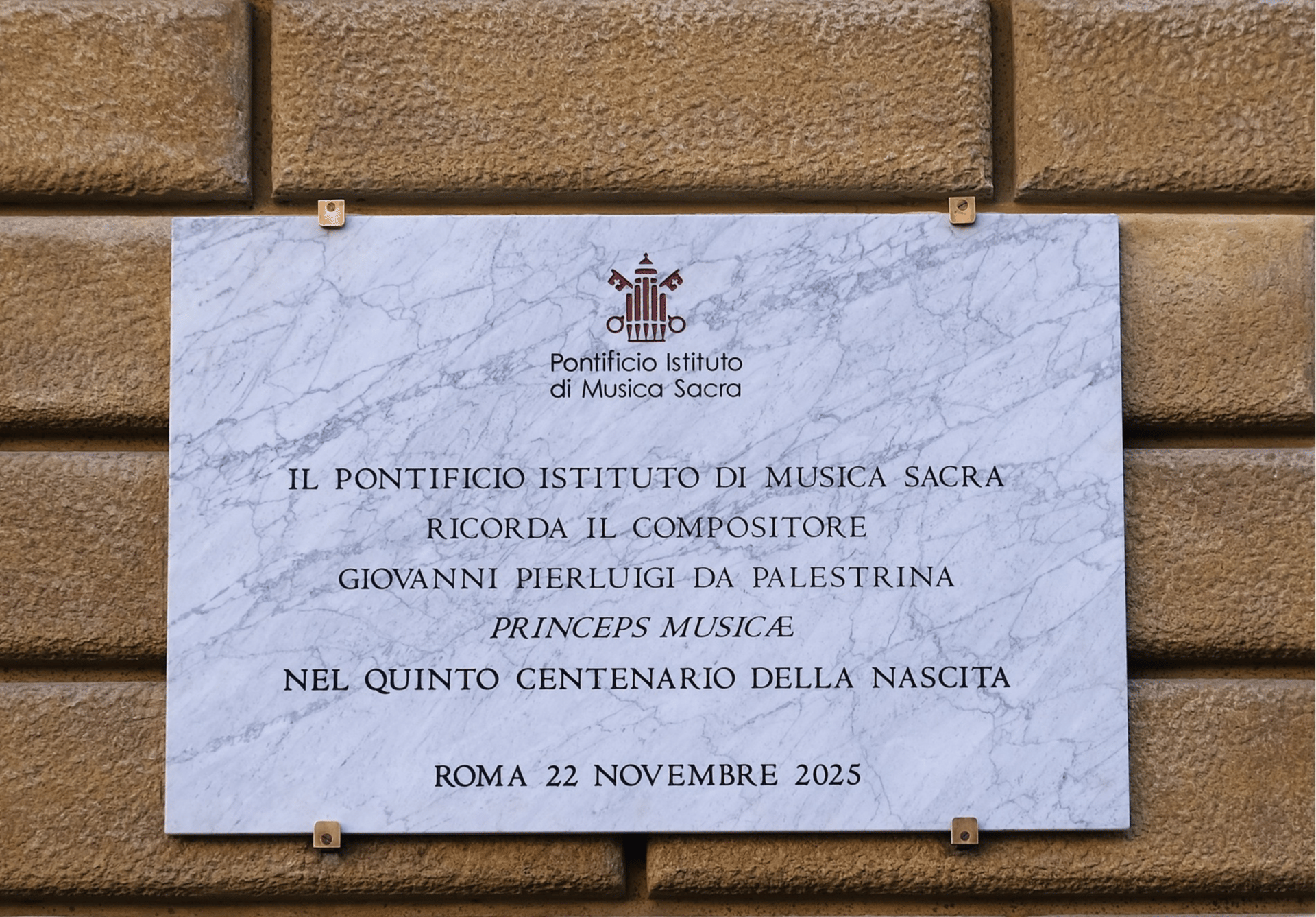 Sacred music shone brightly this November. Last Saturday, at Palazzo San Carlo in the Vatican, we had the joy of inaugurating a commemorative plaque honoring Giovanni Pierluigi da Palestrina on the fifth centenary of his birth. It was in this very house that the great master lived and composed, leaving the Church some of her most enduring treasures of sacred polyphony.